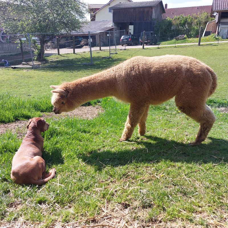 Wir sind stolze Besitzer von 4 Alpakas. Madox mußte ich leider im Juli 2021 über die Regenbogenbrücke gehen lassen.